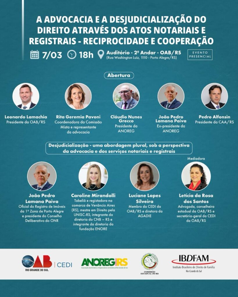 07/03 às 18hs – A advocacia e a Desjudicialização do Direito através dos Atos Notariais e Registrais -Reciprocidade e Cooperação