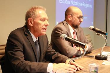 A mesa de abertura estava composta pelo Presidente da Fundação Enore, Ricardo Guimarães Kollet, e pelo Presidente do Colégio Registral do Rio Grande do Sul e membro da Comissão da CRI-RS, João Pedro Lamana Paiva, que anunciou no evento a assinatura de um Acordo de Cooperação Técnica, entre o Instituto de Registro de Imóveis do Rio Grande do Sul (IRIRGS) e o Tribunal de Justiça do Estado do Rio Grande do Sul (TJ/RS), que inicia a implantação da Central de Registro de Imóveis do RS (CRI-RS). “Essa Central vai entrar em operação 90 dias a partir da assinatura do Provimento”, explicou João Pedro Lamana Paiva, destacando que a minuta já está na Corregedoria-Geral da Justiça (CGJ-RS).
