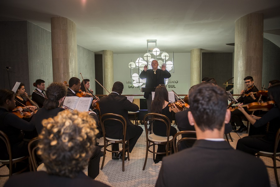 A solenidade contou com uma grande apresentação da Orquestra Jovem do Rio Grande do Sul que encantou a todos com sua vibrante harmonia sob a regência do maestro Telmo Jaconi.